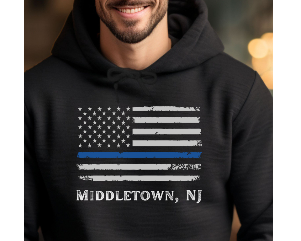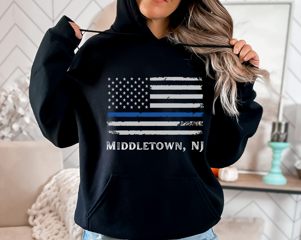 Middletown NJ American Flag Blue Line Adult Hoodie, UNISEX