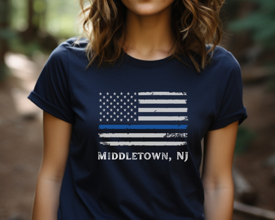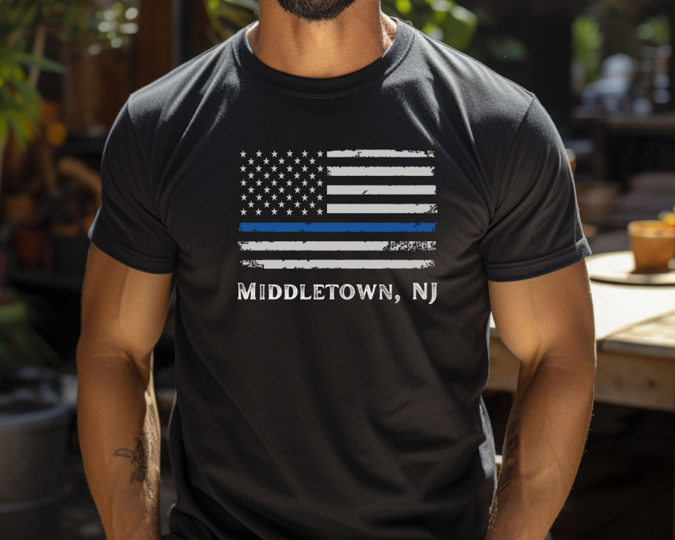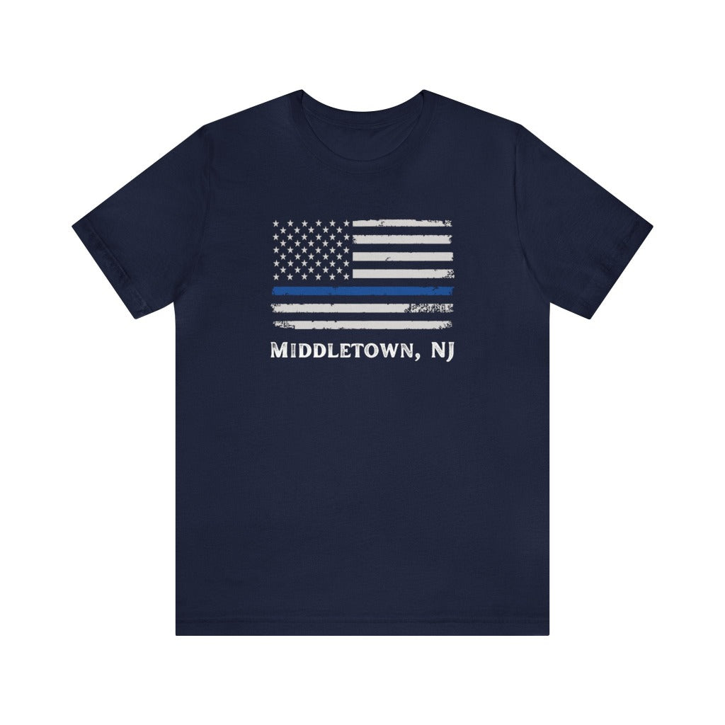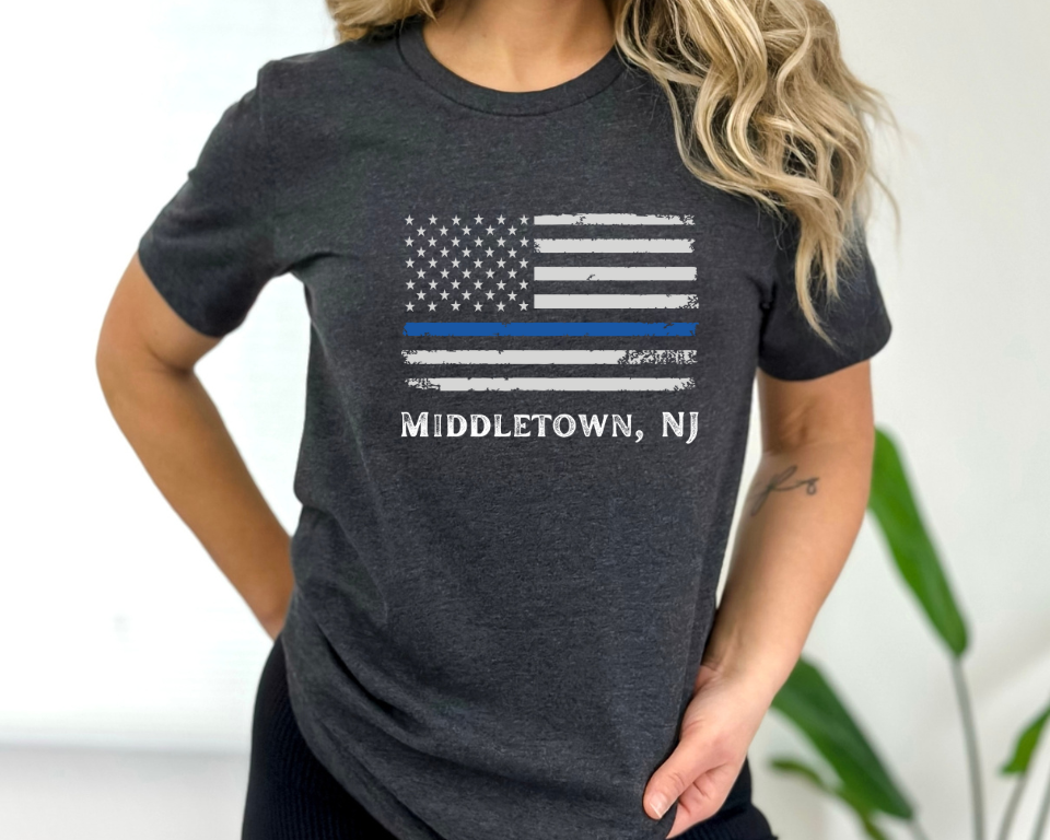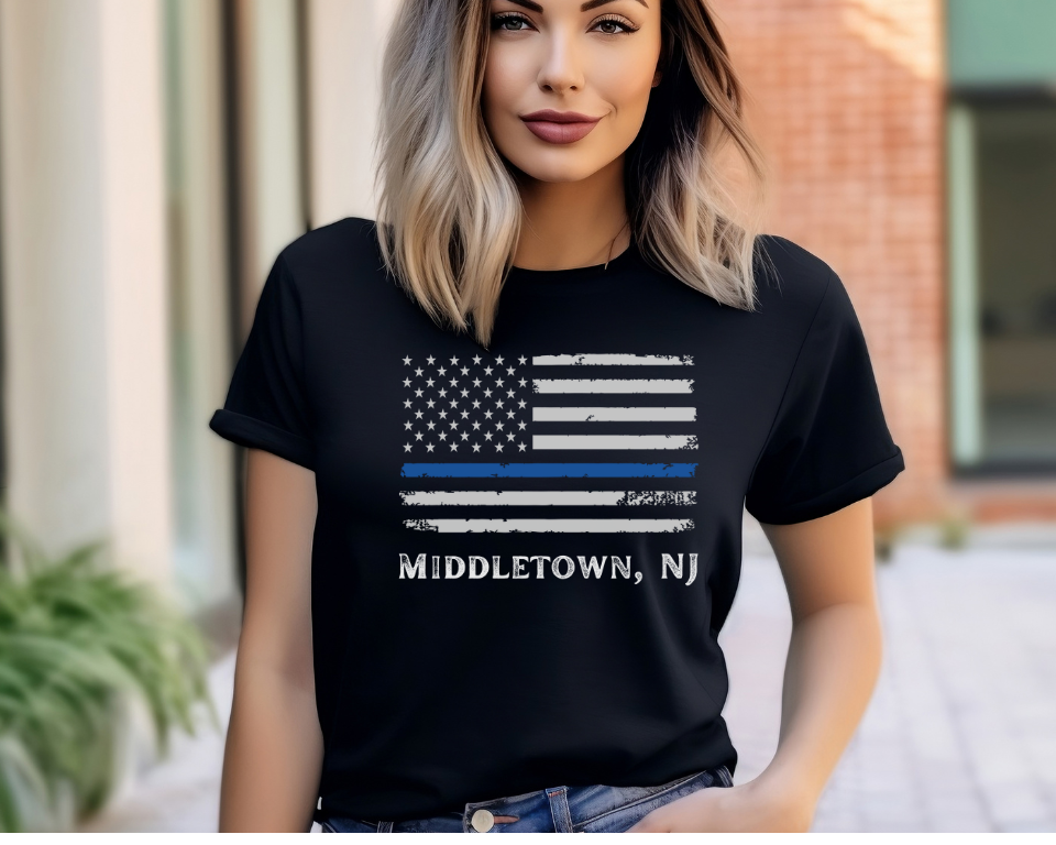 Middletown NJ, American Flag Blue Line Adult Tee Shirt UNISEX